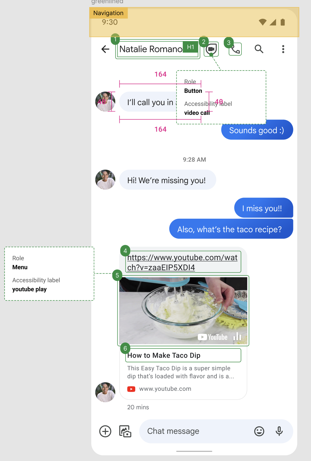 Handoff included redlining and greenlining for accessibility and screen readers via Android’s Talkback feature for disabled users