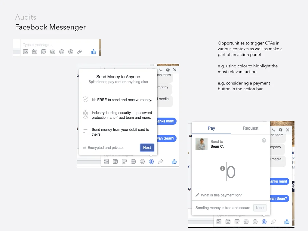There were a lot of moving pieces to our payments project due to other overlapping initiatives in flux such as messenger redesign, scheduling, and reviews efforts. We’d use design reviews to keep on the same page. I think we could’ve coordinated better through design sprints to align and not need as much checkins or later changes.