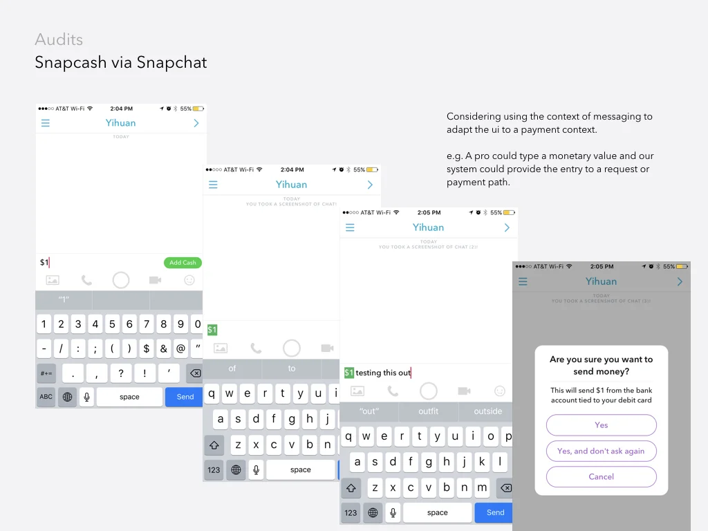 Snapchat's SnapCash feature is an interesting case in terms of grabbing payment intent through user generated messages to then update the ui and send a payment.